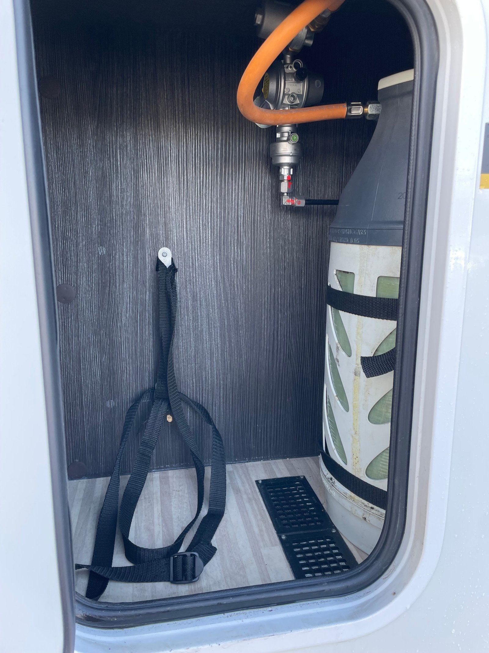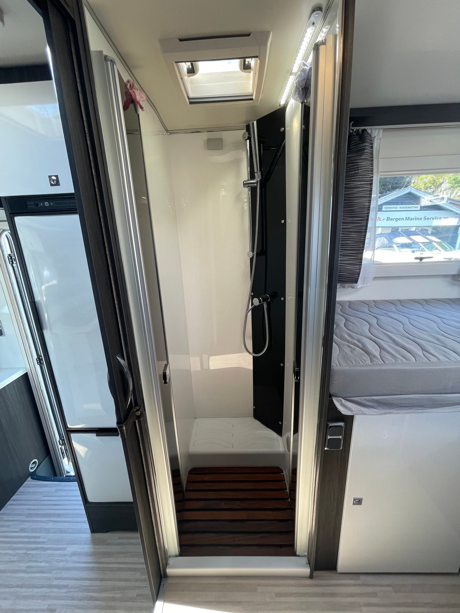 – Système de chauffage Truma 230/gaz, lit de toit électrique, grand garage, jet d’air dans les toilettes pour une bonne ventilation, prise de gaz extérieure, crochets de fixation supplémentaires dans le garage, porte vélos, batterie au lithium.
