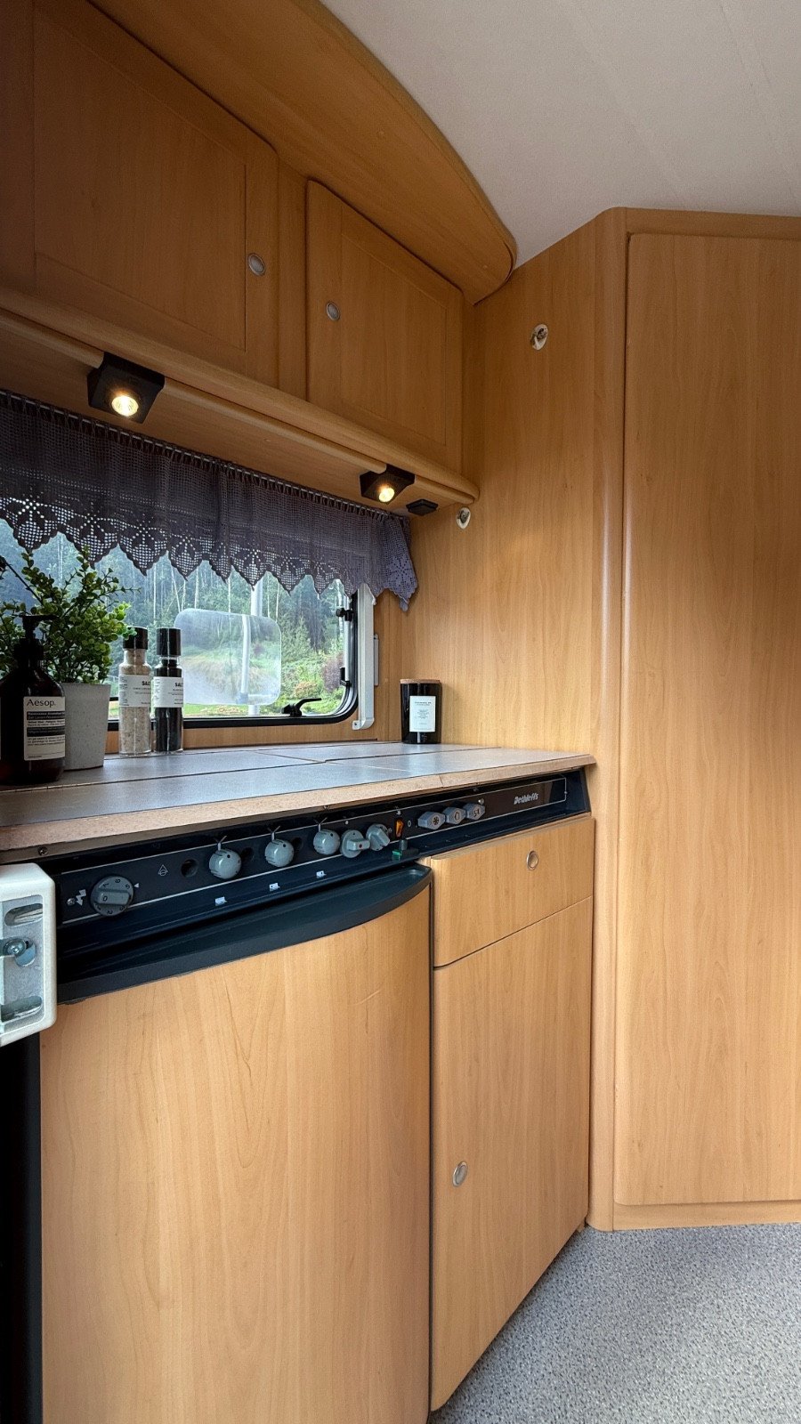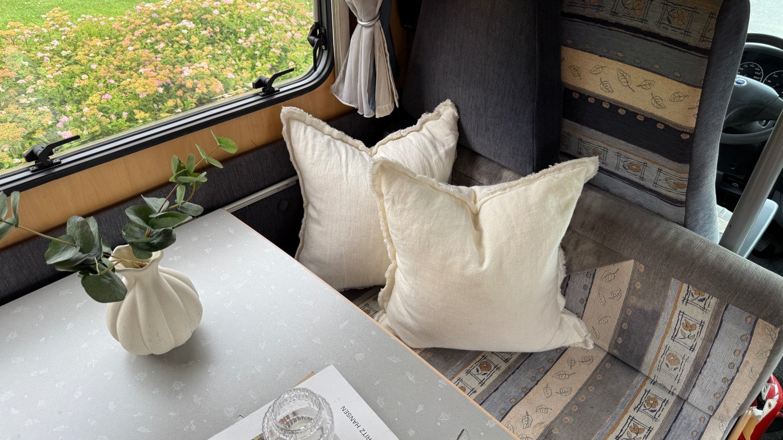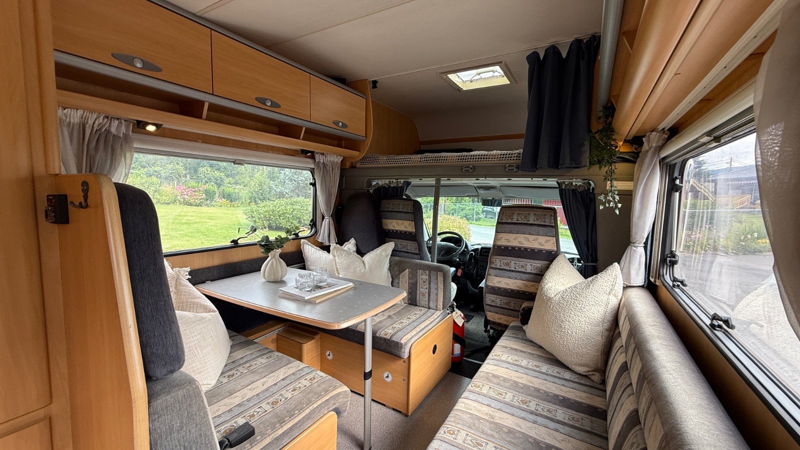 Bel intérieur avec des matériaux modernes et de jolies couleurs. Grand lit en alcôve, ainsi qu’un grand coin salon offrant suffisamment d’espace pour 4 à 6 personnes.
