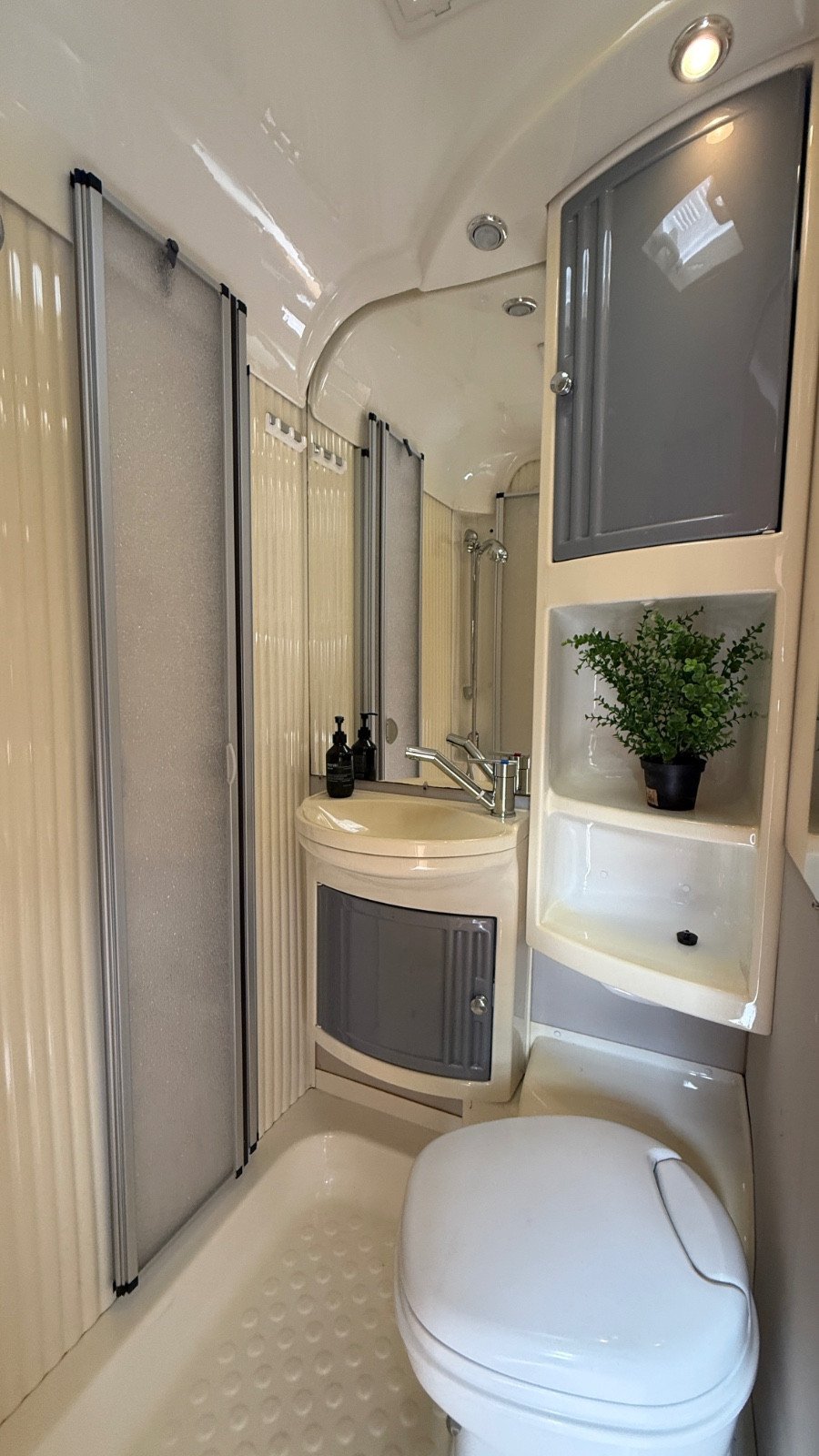 – Salle de bain spacieuse avec toilettes fixes.