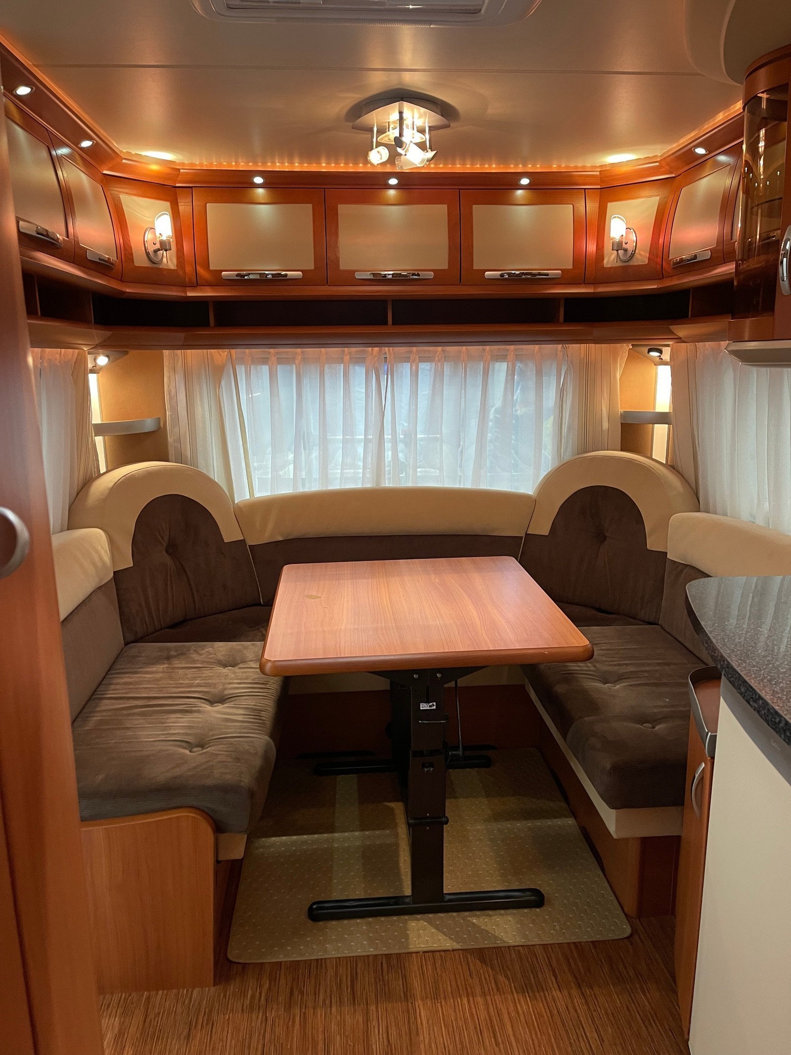 Aménagement des pièces pratique qui donne une bonne impression d’espace avec un coin salon confortable. Conduire un véhicule placé sur l’itinéraire. Parfait pour les couples, peut également être servi pour 4 personnes.