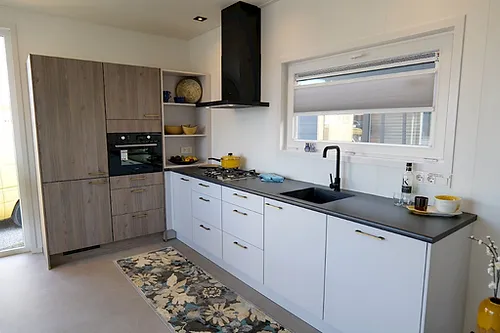 Le Bellagio MZ a un caractère ludique et luxueux. La grande fenêtre panoramique donne au Bellagio une apparence beaucoup plus spacieuse que la plupart des modèles. Le Bellagio est construit sur une charpente lestée et les murs sont hautement isolés. De plus, le Bellagio est très spacieux et facilement accessible grâce aux larges coursives. Un agencement astucieux vous permet de déterminer la position de la cuisine, de réaménager la salle de bain, de remplacer les fenêtres et bien plus encore.