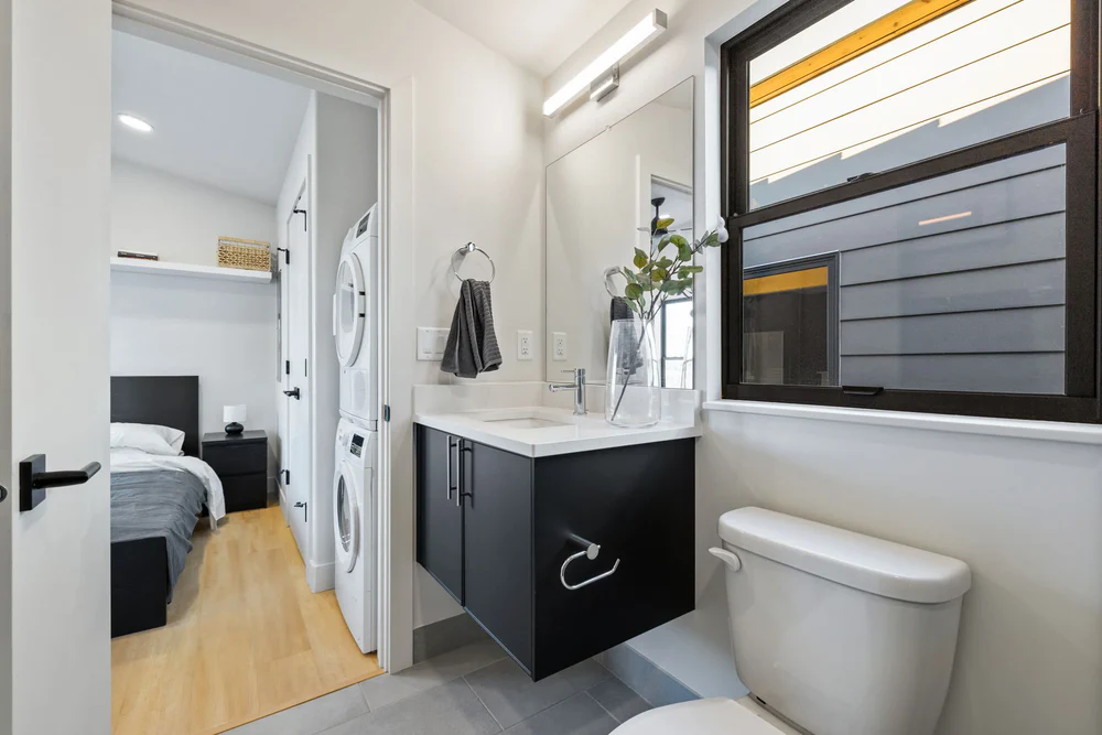 -Choix revêtement de sol : stratifié/linoléum, revêtement de sol salle de bain : linoléum.