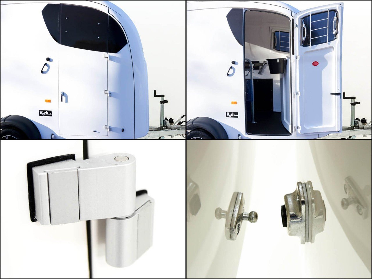Avec ce van à chevaux MAXIMUS en blanc, le fabricant allemand Humbaur présente un chef-d’œuvre en termes d’esthétique et de confort de conduite. La proue aérodynamique de la remorque réduit la résistance de l’air pendant la conduite. Le résultat : moins de bruit de vent, une consommation de carburant réduite, plus d’espace dans la sellerie. En combinaison avec le châssis de sécurité Humbaur pour une tenue de route stable et les pneus adaptés à 100 km/h, le cheval et le cavalier se sentent également à l’aise avec ce van pour chevaux.