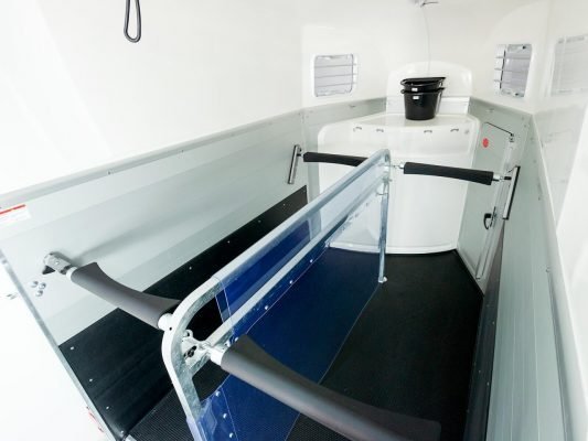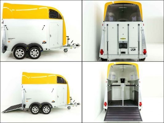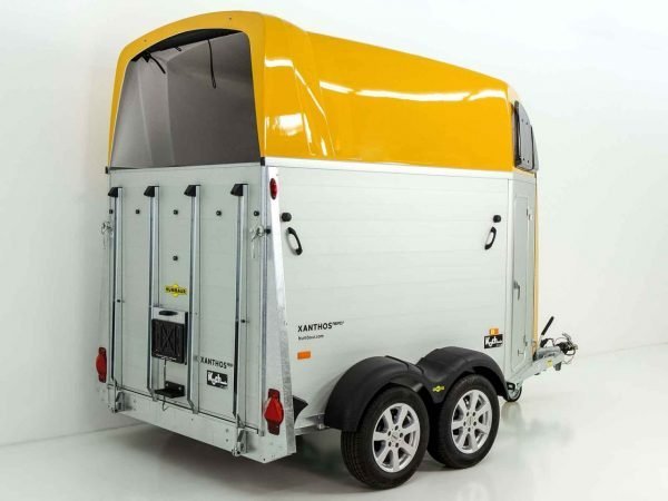 Avec ce van pour chevaux XANTHOS AERO de couleur noire, le constructeur allemand Humbaur présente un chef-d’œuvre en termes d’esthétique et de confort de conduite. La proue aérodynamique de la remorque réduit la résistance de l’air pendant la conduite. Le résultat : moins de bruit de vent, une consommation de carburant réduite, plus d’espace dans la sellerie. En combinaison avec le châssis de sécurité Humbaur pour une tenue de route stable et les pneus adaptés à 100 km/h, le cheval et le cavalier se sentent également à l’aise avec ce van pour chevaux.